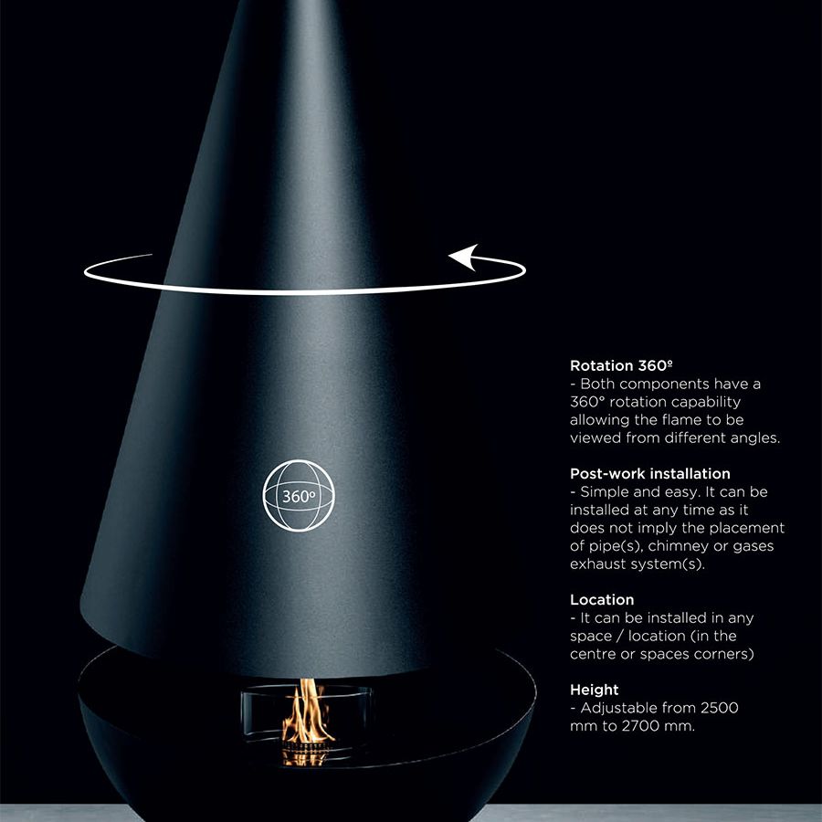 La possibilité de faire pivoter les deux composants du modèle vous ouvre la voie à la contemplation d’une flamme dansante qui envahit l’environnement environnant, créant une atmosphère chaleureuse et réconfortante. Une carte de visite pour les espaces les plus incroyables et uniques.