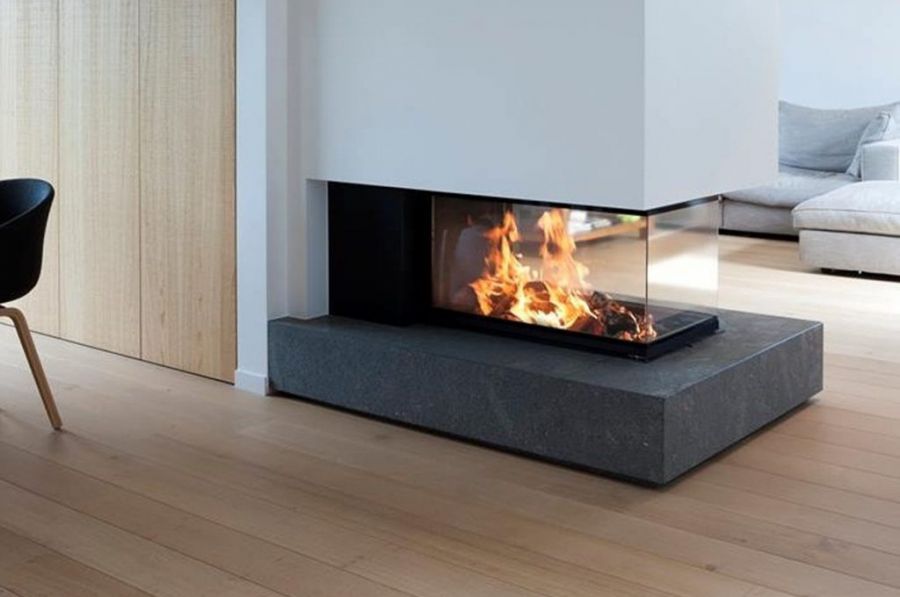 Les foyers à bois, Luna Diamond dotés d’angles sont livrés avec un cadre standard, intérieur de finition de 6,8 centimètres.