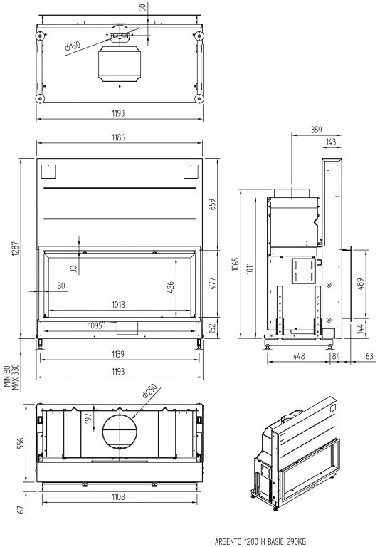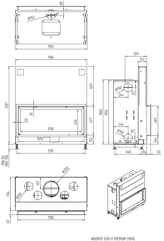| Options | Caisson de convection Intérieur fonte Porte vitrée Argento + Cadres acier |