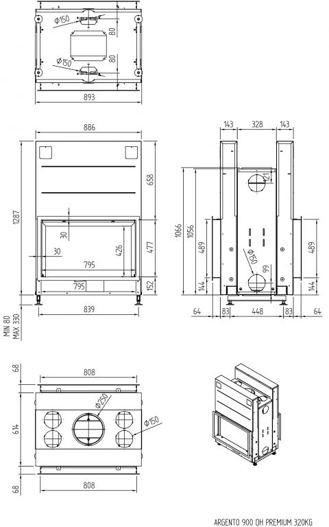 Options | Caisson de convection Intérieur fonte Porte vitrée Argento + Cadres acier |