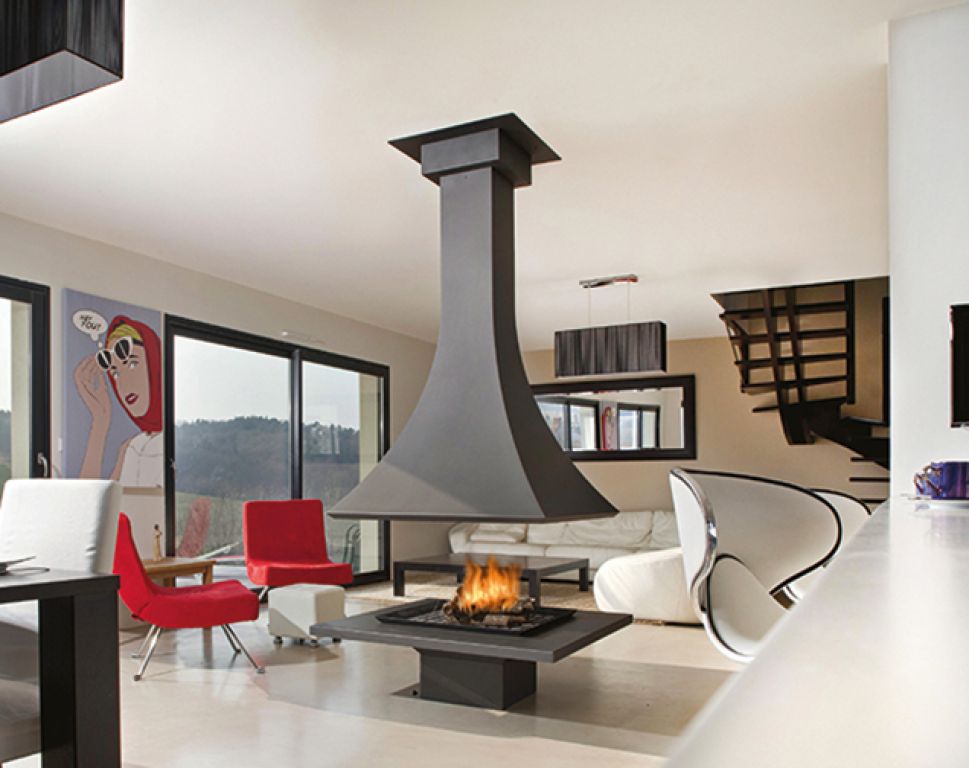 Cheminée centrale haut de gamme et design fabriquée en France dans les ateliers JC Bordelet.