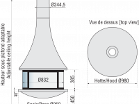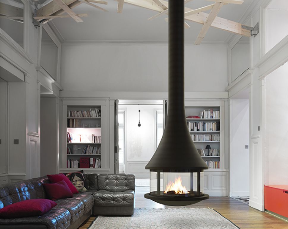 La cheminée centrale et suspendue Zelia 908 est d'une élégance remarquable.