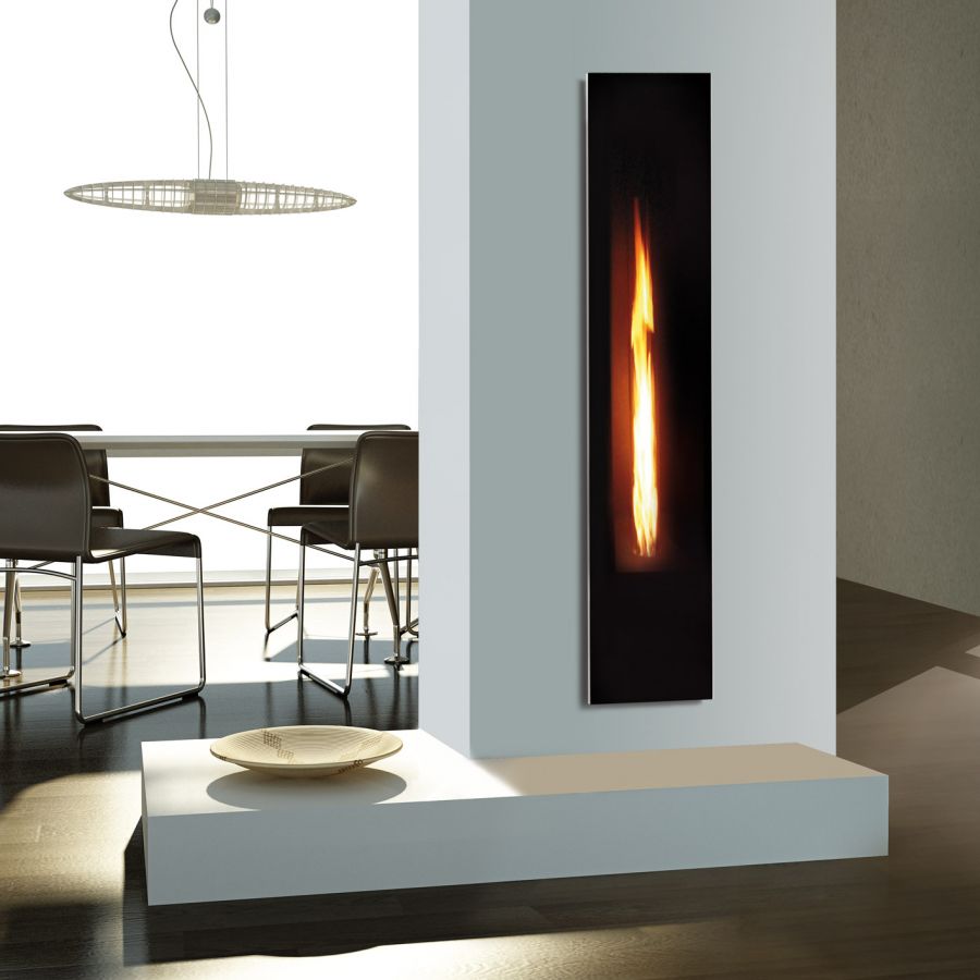 Fonctionnant au Gaz, ce foyer tout en hauteur s’intègre dans votre intérieur pour vous apporter du confort acec sa chaleur rayonnante, ou se transforme en miroir quand il est éteint.