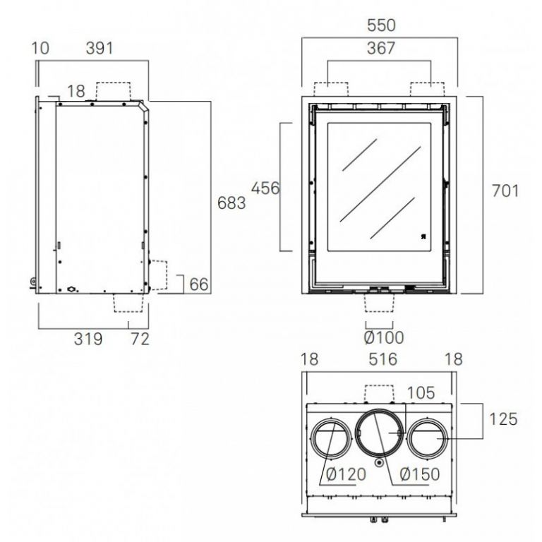 Options | Kit de ventilation, Régulateur de vitesse des turbines Cadre 4 côtés de 4 cm Cadre décoratif de 10 cm Contrôle automatique de la combustion ECOntrol Pied réglable et nivelable |