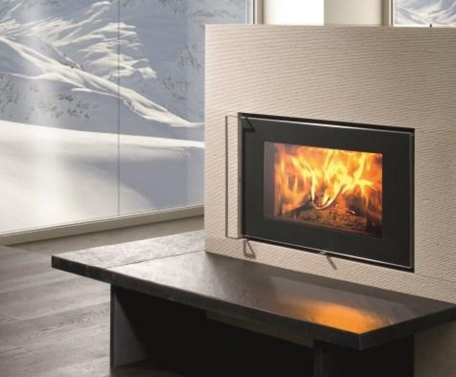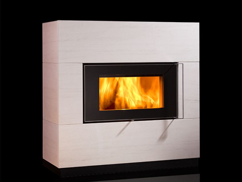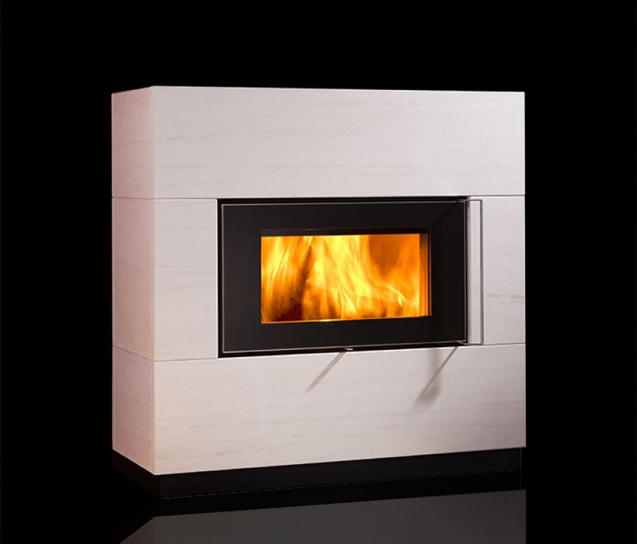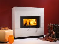 Avec ses dimensions de 130 (h) x 128 (l) x 52 (p) cm et un poids total de 563 kg, l’appareil atteint une domaine de puissance de 5 - 8 kW en (mode) combustion à bois.