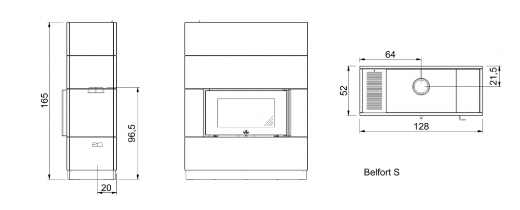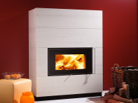 Avec ses dimensions de 165 (h) x 128 (l) x 52 (p) cm et un poids total de 684 kg, l’appareil atteint une domaine de puissance de 5 - 8 kW en (mode) combustion à bois.