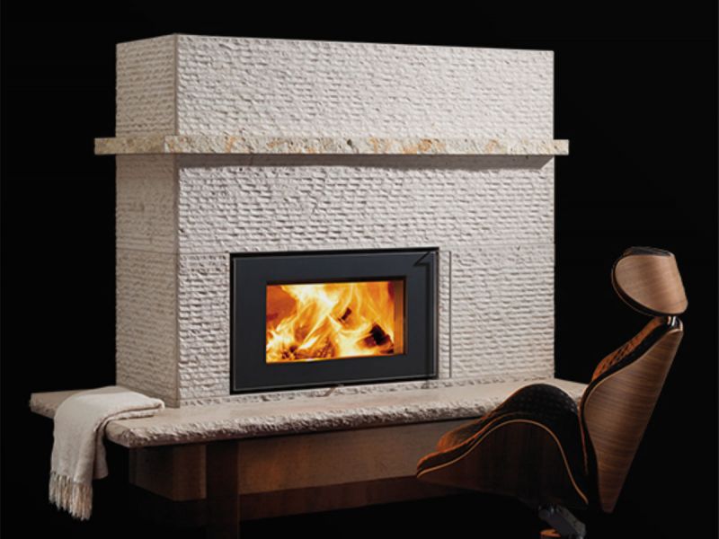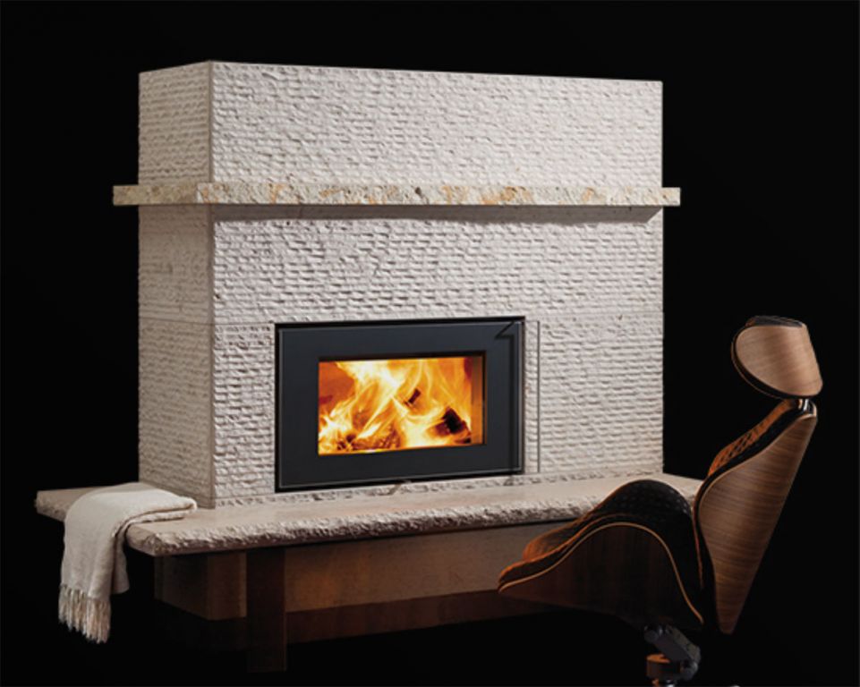 Avec ses dimensions de 165 (h) x 165 (l) x 54 (p) cm et un poids total de 953 kg, l’appareil atteint une domaine de puissance de 5 - 8 kW en (mode) combustion à bois.