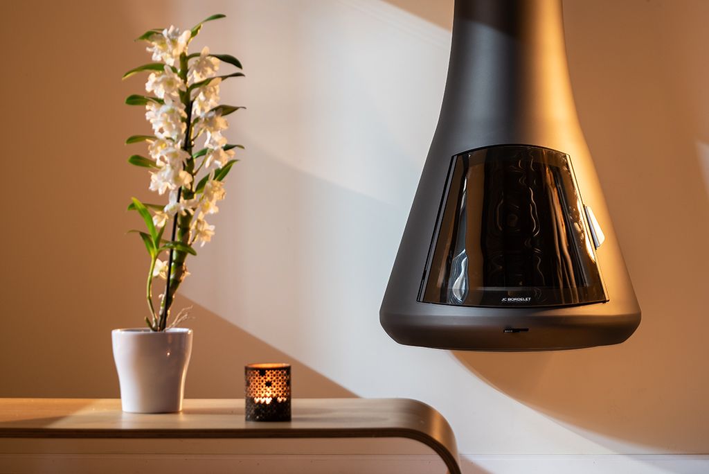 Totalement suspendues au plafond ou dotées d'un socle posé au sol, ces cheminées sont une pièce de décoration à part entière dans votre intérieur.