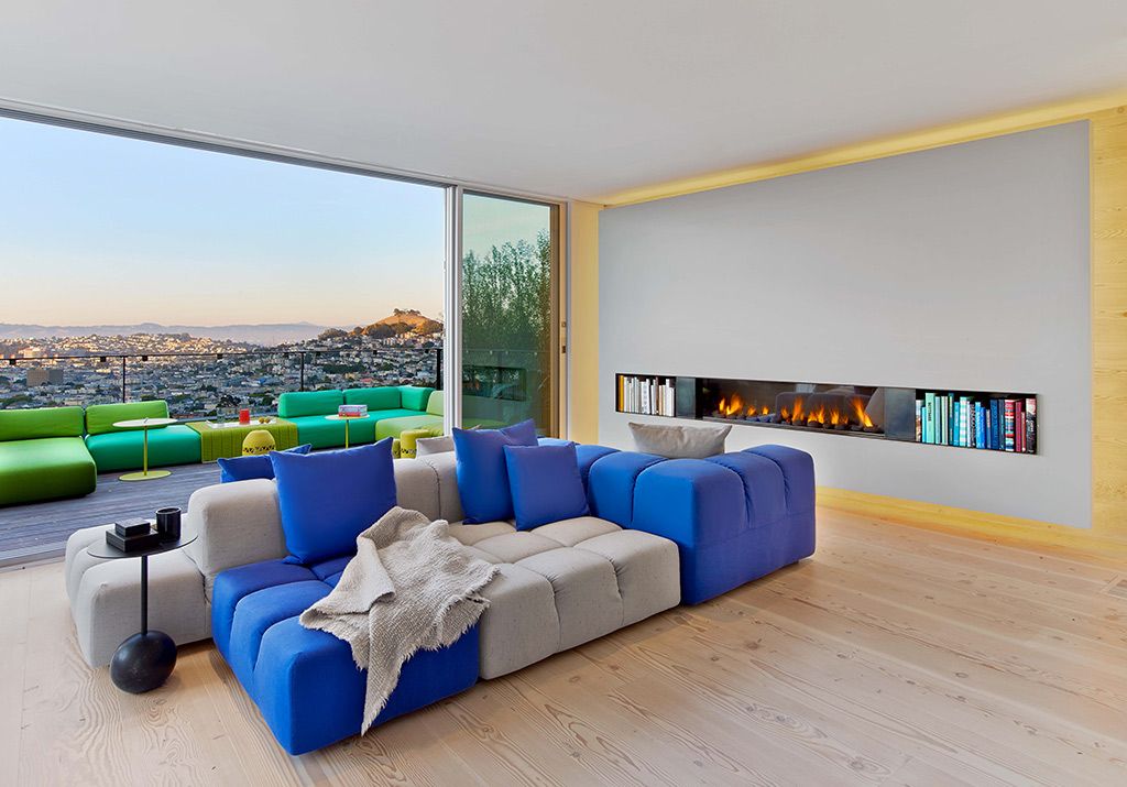 Trés design, les cheminées gaz sont prisées dans les intérieurs contemporains. Les habillages sont réalisés sur mesure en intégrant éclairage, télévision, placards, niches... Les matériaux sont des plus créatifs : bois, pierre, verre, cuir...