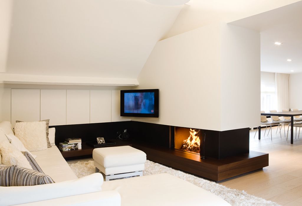 Profitez 2 fois plus du spectacle des flammes grâce à une cheminée traversante équipée d'un insert double face. Cette cheminée traversante vous permet de structurer l'espace, de créer une séparation astucieuse. Une solution architecturale qui apporte un "plus" à votre intérieur !