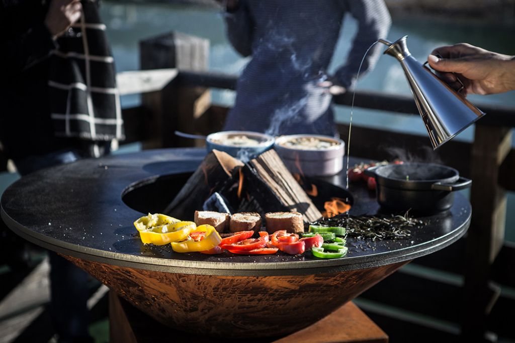 Ce système unique est plus qu'une plancha au feu de bois, c'est une façon de partager en toute convivilalité autour d'une cuisine saine.