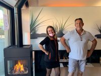 Ce poêle design actuellement en expo dans le show-room ATRE DESIGN fonctionne avec sa télécommande.