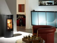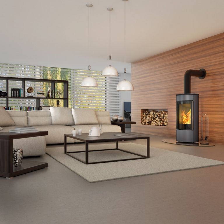 Senso S est un poêle à bois de petite taille aux formes parfaites avec un avant incurvé qui accentue la fenêtre et offre une incroyable vision du feu.