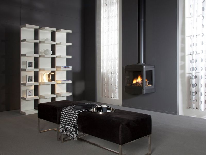 Skive est un poêle suspendu à trois faces indépendant et d’allure moderne en fonte noire. Il allie sobriété, robustesse et solidité.