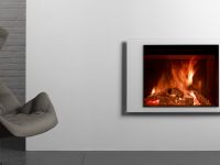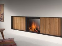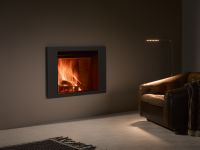 Stuv 22-90 est un foyer bois à vitre escamotable épuré, existant avec de multiples cadres de finition.