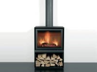 Avec son design sobre et épuré, et sa réserve de bûches intégrée, ce poêle à bois existe en trois largeurs :