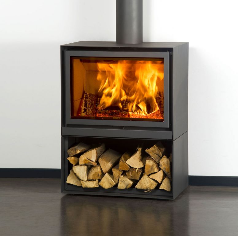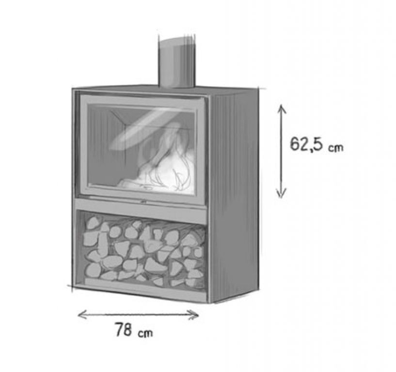 Avec son design sobre et épuré, et sa réserve de bûches intégrée, ce poêle à bois existe en trois largeurs :