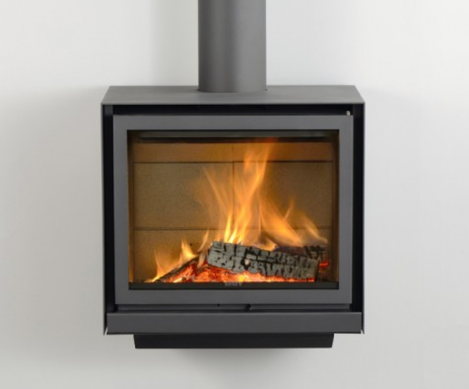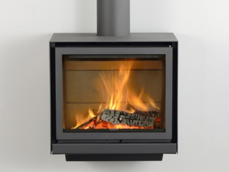 La porte vitrée de ce poêle à bois offre une vue imprenable sur le spectacle des flammes. L'effet visuel du foyer suspendu achève le tableau : le sol ainsi dégagé, la pièce apparaît plus spacieuse. Le système de récupération de la chaleur contenue dans les gaz de combustion prodigue à ce poêle à bois un excellent rendement.