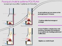 Polyflam est un système unique offrant une double fonction de feu ouvert / feu fermé : les amoureux du feu traditionnel ne perdront rien au rendement calorifique, même sans vitre !