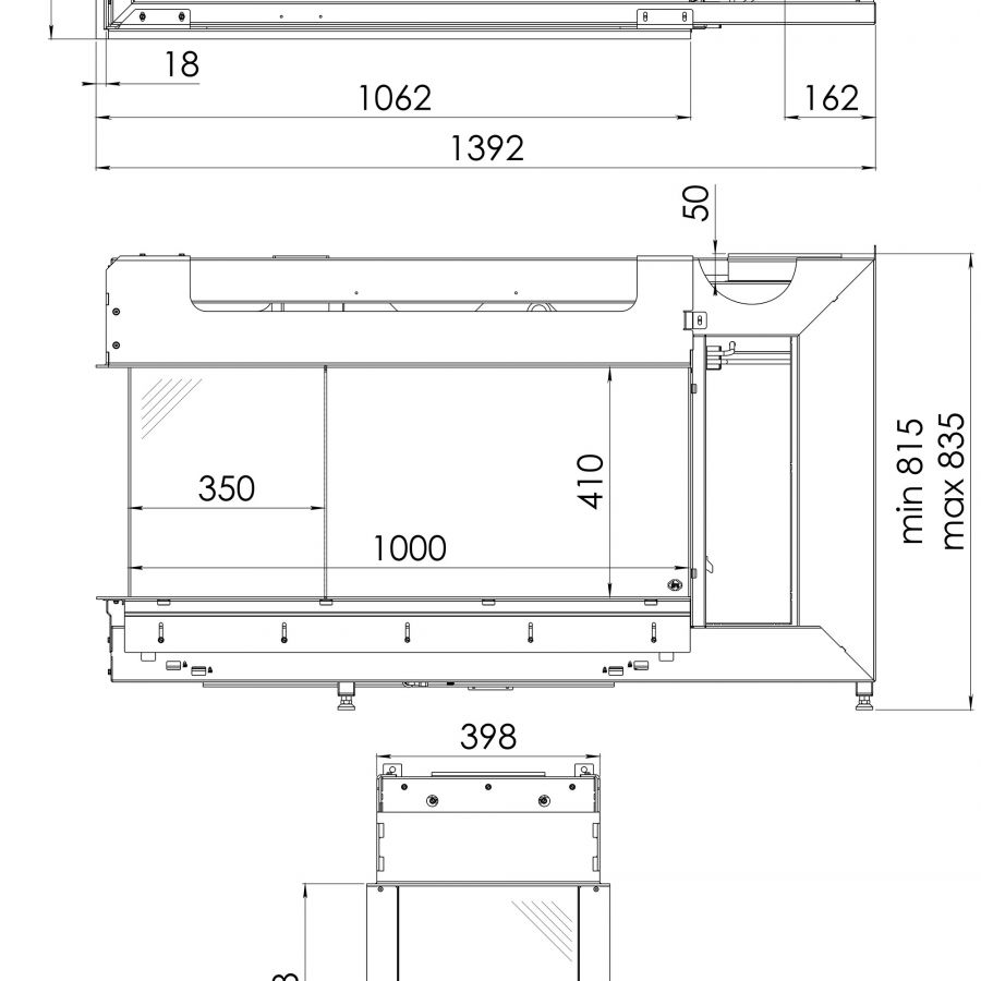 Un foyer à gaz sans cadre de luxe à 3 côtés qui est à mi-chemin entre un tunnel et un foyer d’angle. Avec un choix d’alimentation de feu par bûches ou galets, il est conçu pour être installé pour diviser une pièce et être vu des deux côtés. Son objectif est double : être une source de chaleur et être un élément architectural intéressant.
