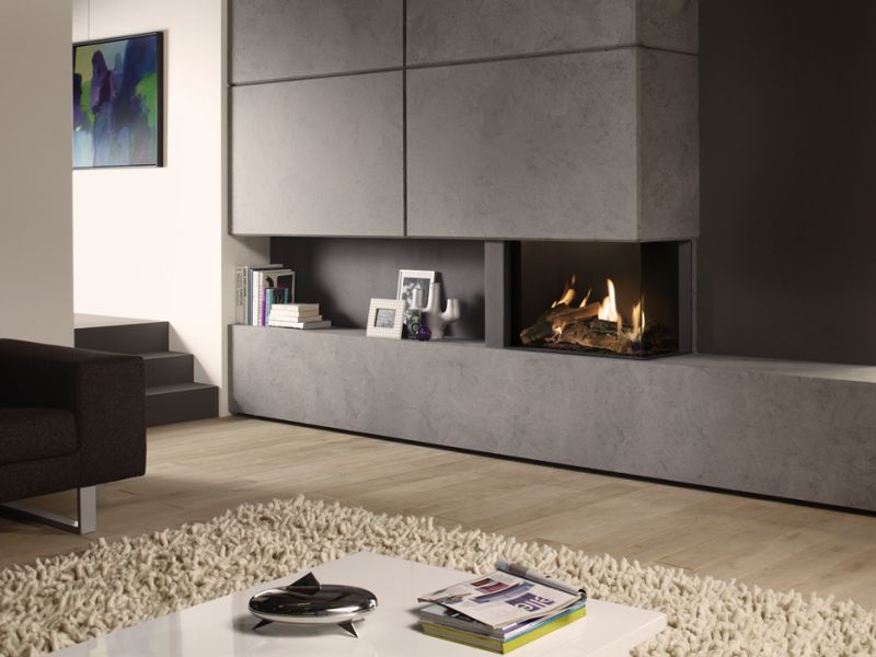 Le foyer à gaz Lugo 80/2 Eco Wave est un modèle d’angle à deux côtés de 80 cm de large qui vous permet de voir le feu de bûches impressionnant de deux angles différents. Aucune ouverture de ventilation n’est visible dans les cadres et la fenêtre se raccorde directement à la plinthe avec un aspect lisse. Les finitions intérieures comprennent du Ceraglass vitrifié, du noir mat ou de la fonte d’acier cannelée.