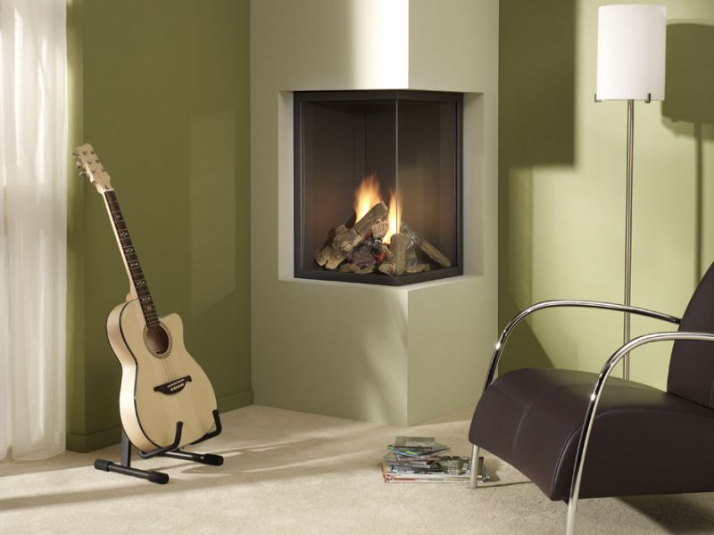 Foyer dr'angle vertical stylé : Paco Eco Wave est un foyer d’angle flexible qui peut être installé des deux côtés d’une cheminée ou transformé en élément important indépendant dans une pièce comme présentée sur notre photo. Il existe en version encastrée ou en saillie, avec des couleurs de cadre métalliques aluminium ou anthracites.