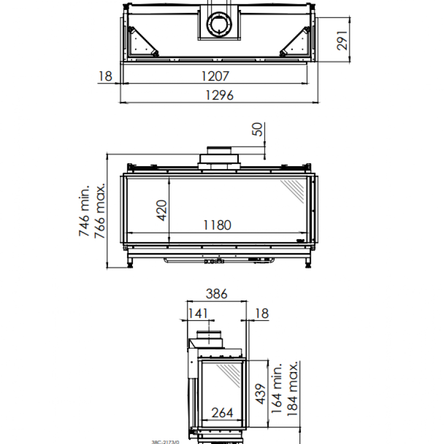 Direct Flue Directement sur le foyer avec coude 90° vers l'extérieur