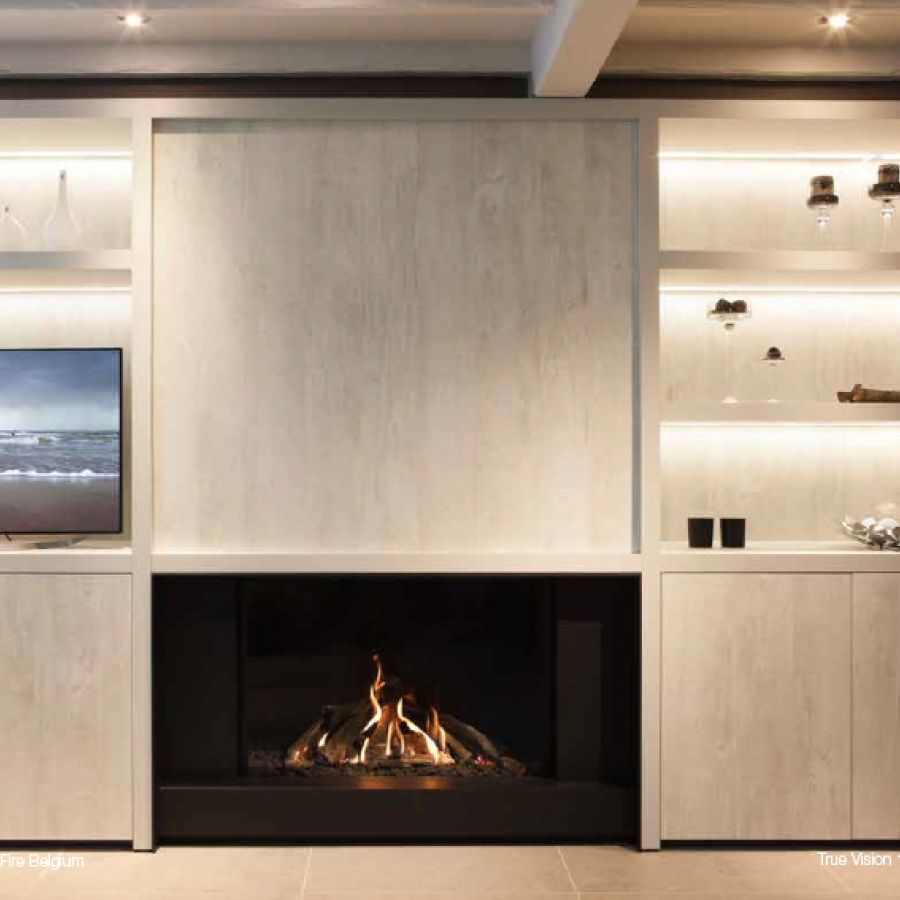 Le True Vision 1150V est équipé d'un foyer avec 3 brûleurs, dont deux sous forme de broches dans lesquelles se glissent les bûches en céramiques, ainsi les flammes sortent littéralement de celles-ci.