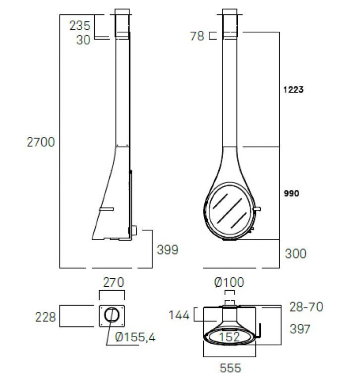 | Options | Adaptation de la hauteur sur mesure Pour plafond plat ou incliné Piédestal Econtrol : Système de contrôle intelligent de la combustion |