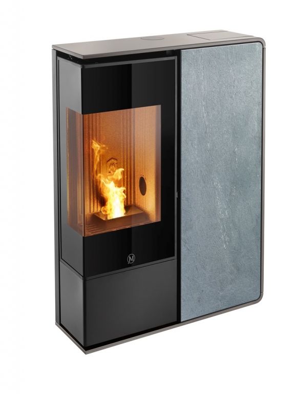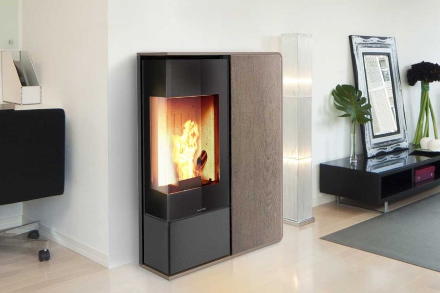Avec sa très faible profondeur (27cm), le poêle à pellets I-Dea 2 Angolo se prête au jeu de tous les intérieurs.
