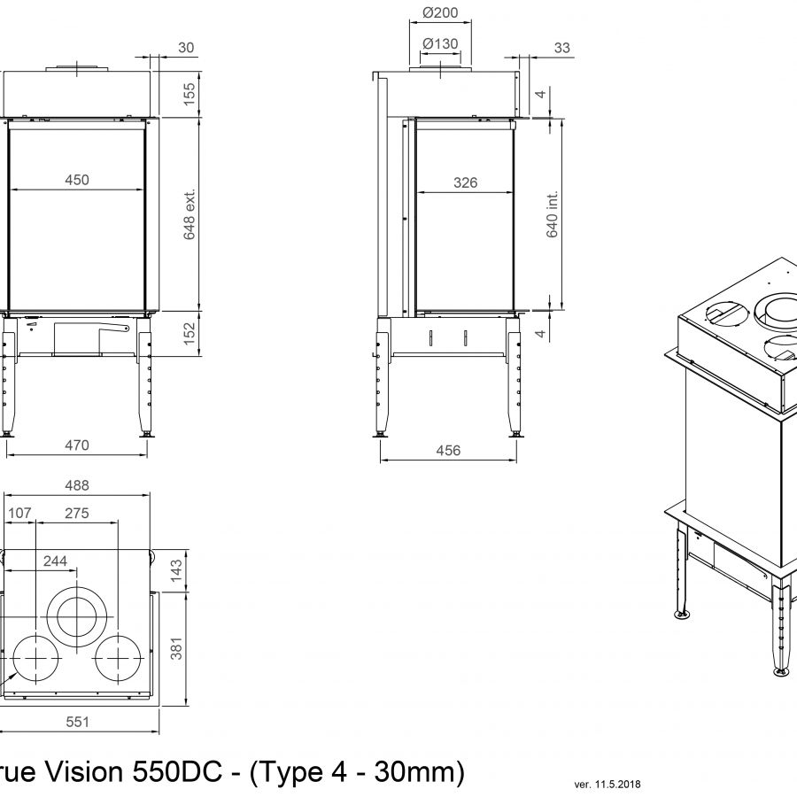 Le True Vision 550 DC est le plus petit modèle de cheminée Gaz de la gamme, double coin vitré. Ce foyer gaz est à encastrer et est conçu en version standard avec une vitre en céramique, un fond en acier noir et un jeu de bûches en céramique. Cette cheminée est équipée de 3 brûleurs, une dans le fond du foyer sous forme de rampe et deux autres extérieurs, permettant d’intégrer deux bûches.