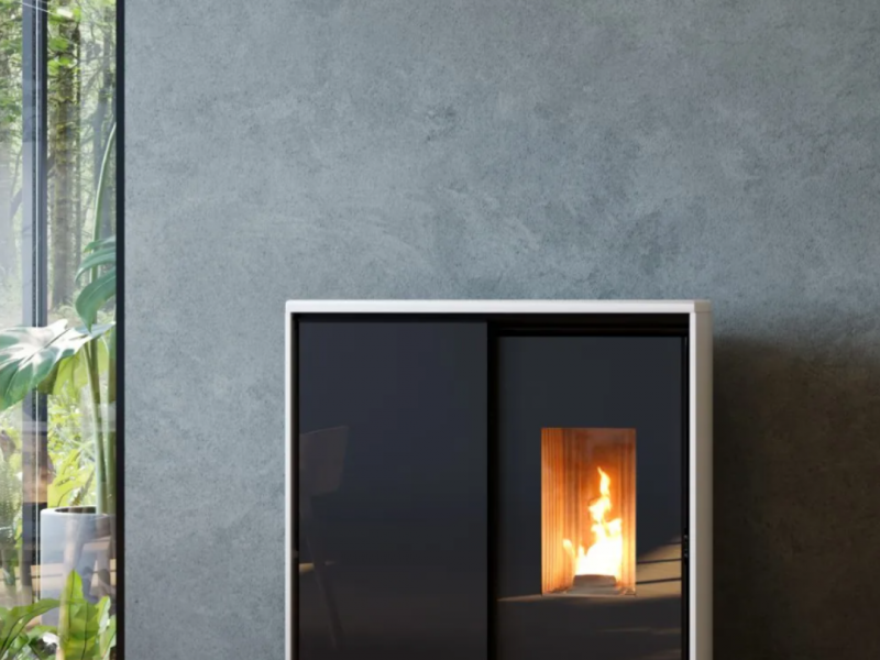 Le REVERSE S est un poêle à air hybride novateur, fonctionnant à la fois avec du bois et des granulés pour la diffusion d'air chaud.