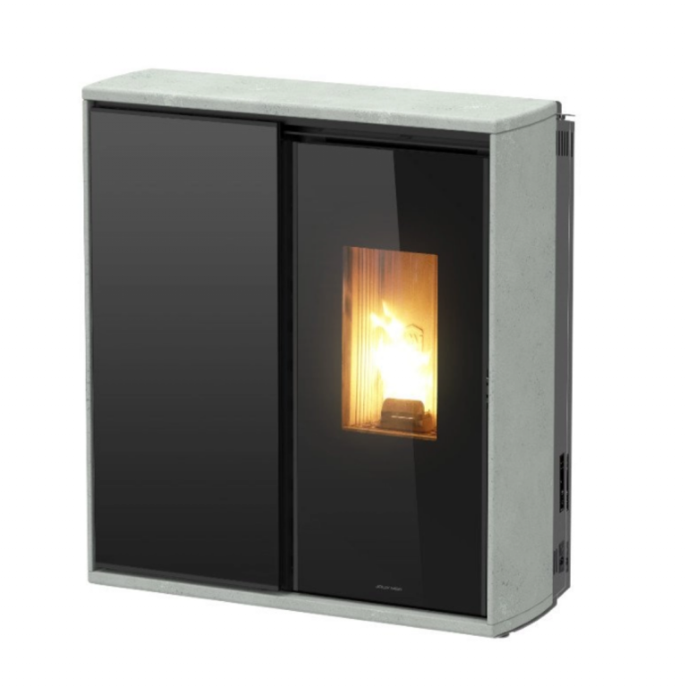 - Finitions : Acier blanc, acier noir, pierre ollaire (panneau frontal en vitre noire sérigraphiée simple ou décorée)