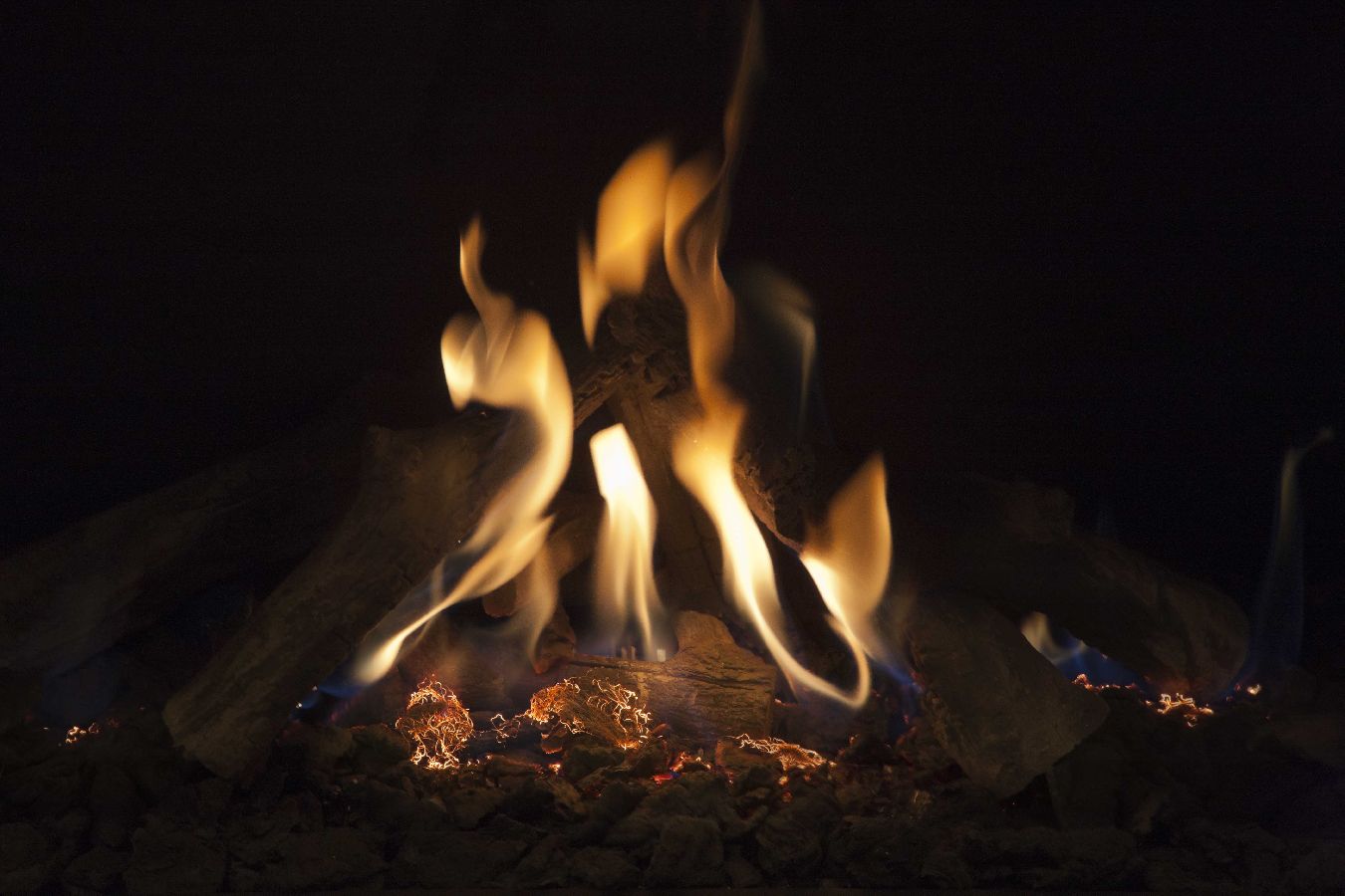 Le premier est l’imitation d’un vrai feu de camp. Le foyer est doté de 3 brûleurs, un sous forme de rampe et les deux autres en forme de broches, où viennent se glisser deux bûches en céramique trouées, permettant ainsi aux flammes de sortir littéralement des bûches.
