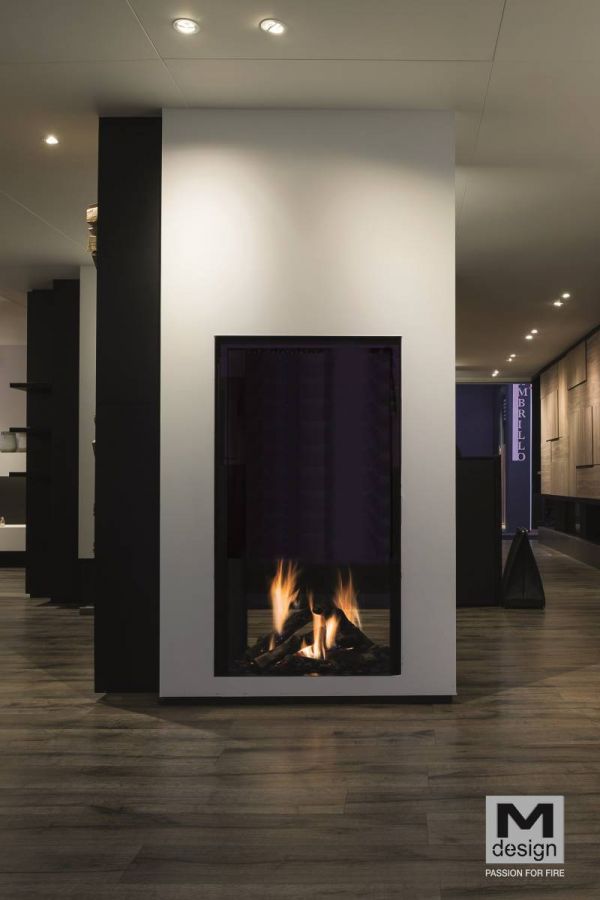 Le True Vision 850 DVL est fait partie des plus grandes Cheminées Gaz de M-Design, doté de deux très hautes vitres de 1,40 m. Ce Foyer Gaz double face vitrée est conçu en standard d’un jeu de bûches en céramique, de 4 brûleurs dont 3 épousant les formes des bûches pour un effet « feu de camp », d’une télécommande et d’un fond en acier noir.