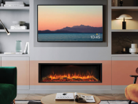 Véritable pièce maîtresse décorative, l’eReflex 135RW de Gazco séduit par son format panoramique et sa technologie de flamme LED ultra-réaliste, pensée pour les intérieurs contemporains haut de gamme. Cet insert électrique dernière génération propose une personnalisation complète : couleurs de flammes, effets de braises, lit décoratif et éclairage d’ambiance. Il s’installe esans aucun conduit et se contrôle facilement via télécommande, application mobile ou assistant vocal. Idéal pour sublimer un mur de salon, un hall d’entrée ou un espace détente, il offre une solution de chauffage d’appoint élégante et connectée.