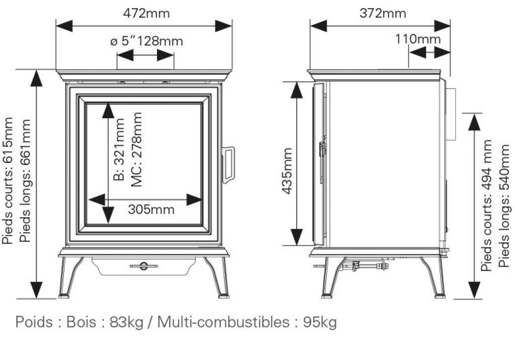 Le poêle à bois Sheraton 5 offre un design intemporel et raffiné, grâce aux détails décoratifs tels qu’une porte en fonte biseautée et des pieds longs en option, pour davantage de hauteur.
