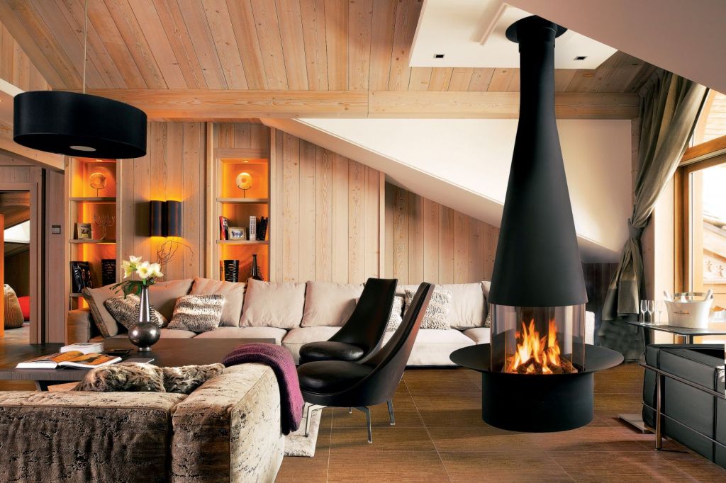 Disponible en versions bois et gaz, la Filiofocus 1600 se distingue par sa hotte conique de 1600 mm.