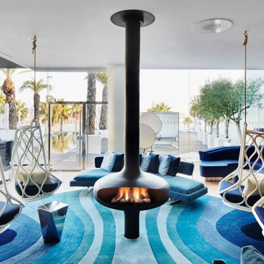 La cheminée centrale Magmafocus de Focus est une pièce maîtresse au design saisissant, partageant la même silhouette que le modèle Domofocus avec un diamètre de 1,10 mètre.