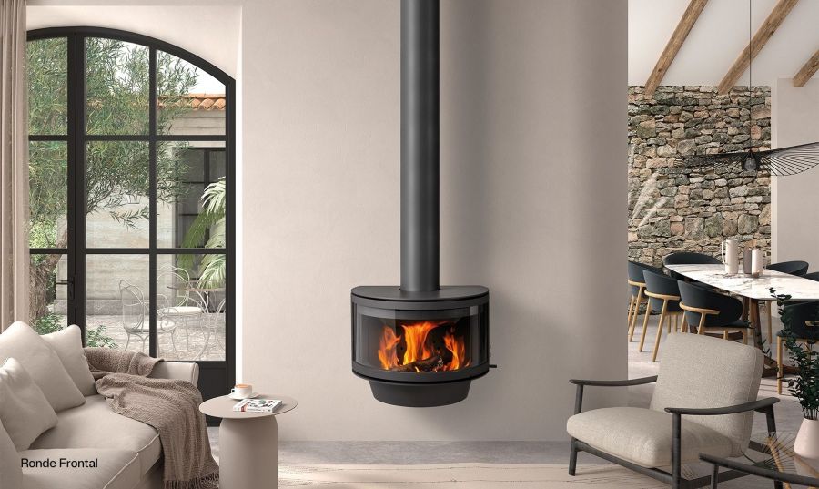 Avec son design sculptural et sa façade circulaire emblématique, le poêle à bois Ronde Frontal de Rocal combine esthétique minimaliste et haute performance.