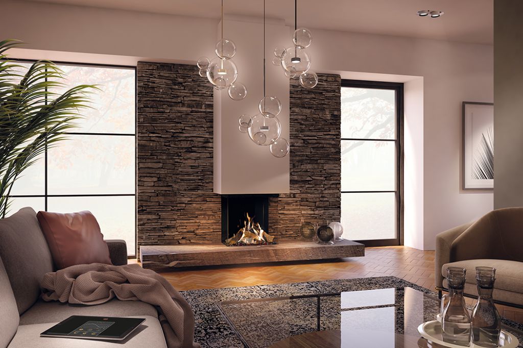 Le foyer à gaz DRU Maestro 60/3 Eco Wave est un insert 3 faces haut de gamme offrant une vision panoramique exceptionnelle des flammes, idéale pour structurer un espace de vie moderne. Grâce à son brûleur Dynamic Flame Burner®, il reproduit un feu ultra réaliste avec des flammes enveloppantes autour de bûches décoratives authentiques. Sa technologie Eco Wave permet d’ajuster l’intensité du feu tout en réduisant la consommation énergétique. Équipé du système Clear View glass, il garantit une vitre toujours plus propre pour une vision parfaite du feu. Élégant et performant, ce foyer gaz s’intègre parfaitement dans des projets sur mesure, apportant confort thermique et esthétique signés Atry’Home.