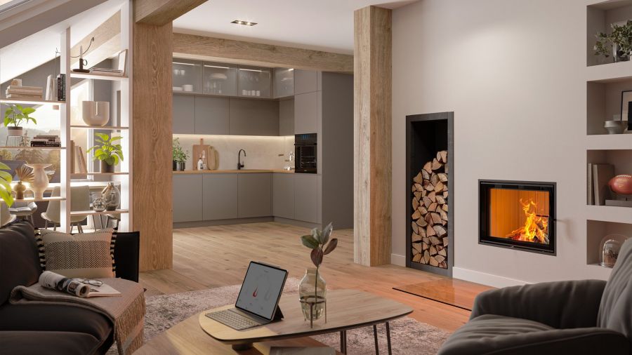 Le Varia 1V Hydro de Spartherm est un insert de cheminée au design épuré avec une large vitre droite, offrant une vue dégagée sur les flammes. Équipé d'une porte rabattable et d'options de charnières à gauche ou à droite, il allie esthétique moderne et performance. Conçu pour une combustion propre, il est compatible avec des systèmes de gestion intelligente pour un contrôle optimal de la chaleur.