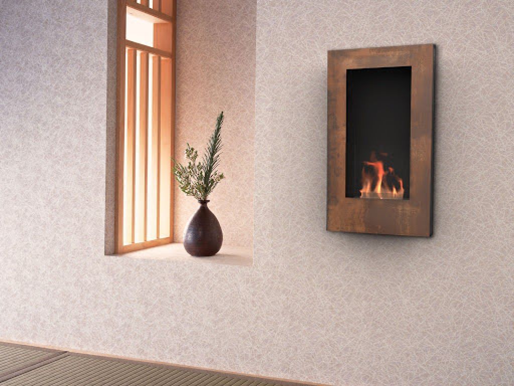 Une cheminée bio-éthanol murale qui offre une très belle vision de flamme dans un design pure, primaire et sobre.