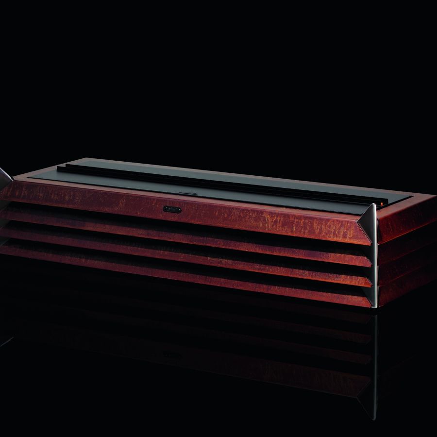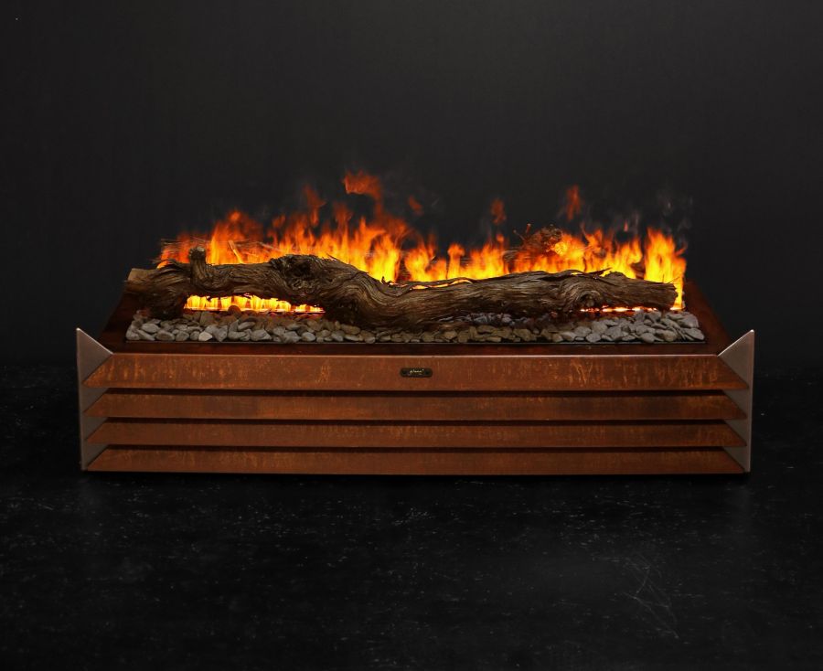 - Finitions : Acier laqué noir + coins en inox brossé, acier corten effet rouillé + coins en acier laqué noir