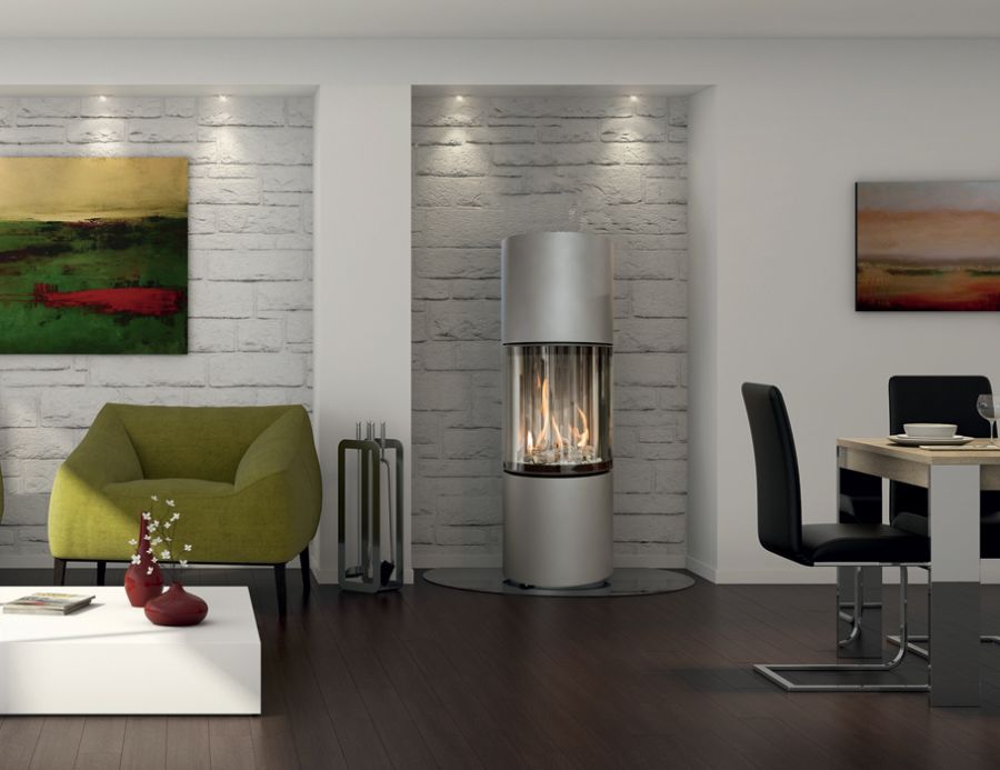 Ce "poêle" est plein de passion, pratiquement à tous égards, du design rond de 48 cm de diamètre à la vitre panoramique de 180° aux dimensions généreuses. Le modèle Passo E nécessite une cheminée.