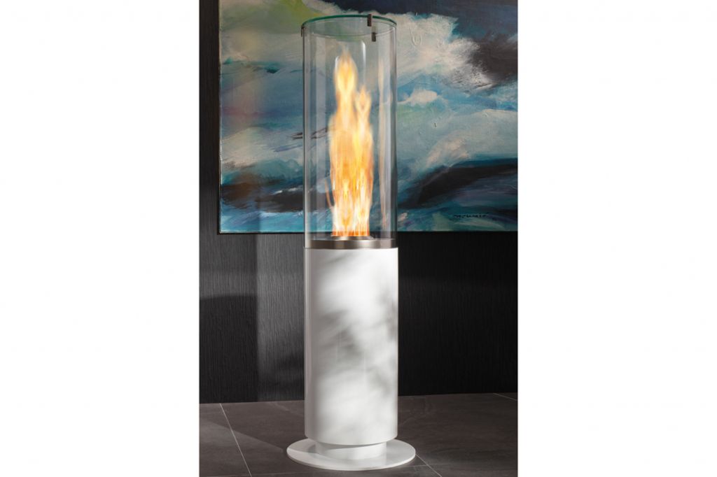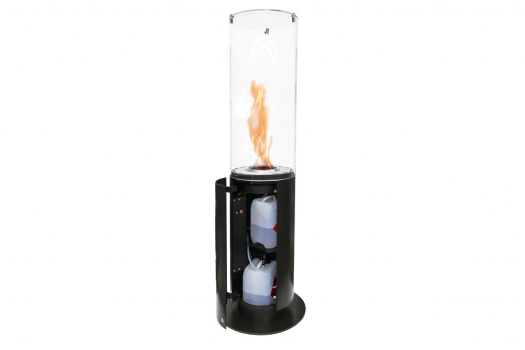 Le foyer Tower d'ebios a un beau design cylindrique qui magnifie tout espace intérieur ou extérieur. Avec son format autonome et sa puissance calorifique élevée, cette cheminée au bioéthanol convient aux jardins des cafés, aux terrasses d'hôtels et aux centres commerciaux extérieurs, offrant une atmosphère chaleureuse et accueillante. Ce foyer singulière est entouré d'une vitrine en verre robuste qui protège les flammes du vent et le brûleur est actionné par une télécommande très pratique.