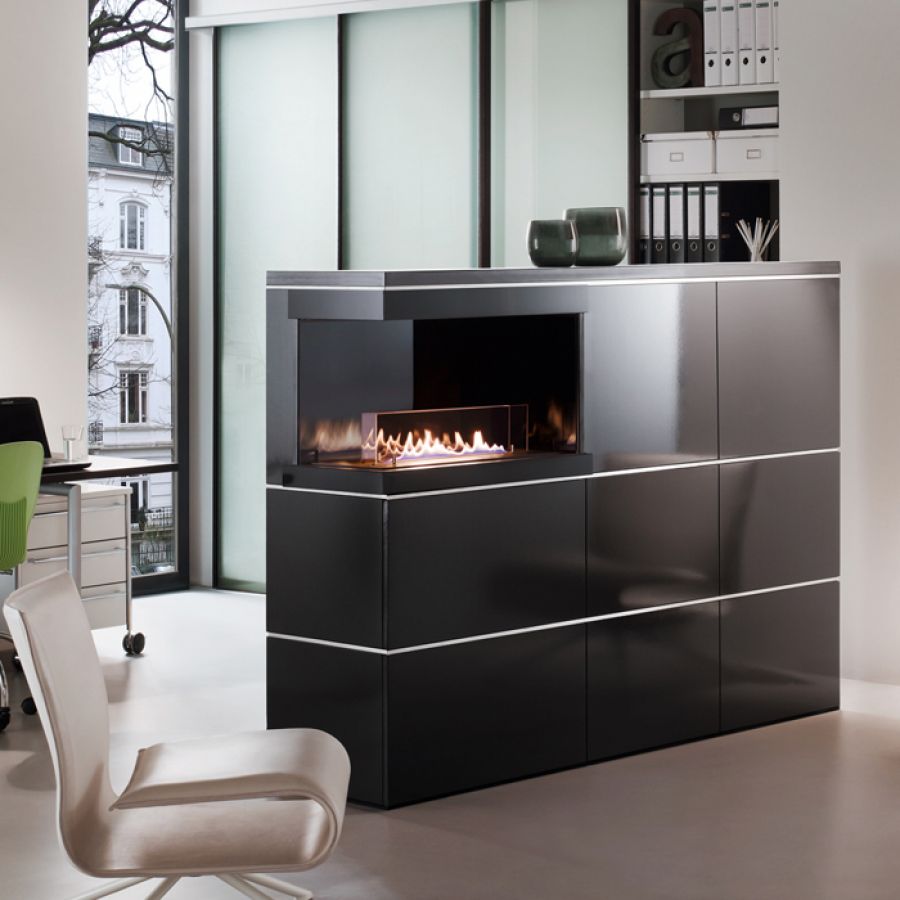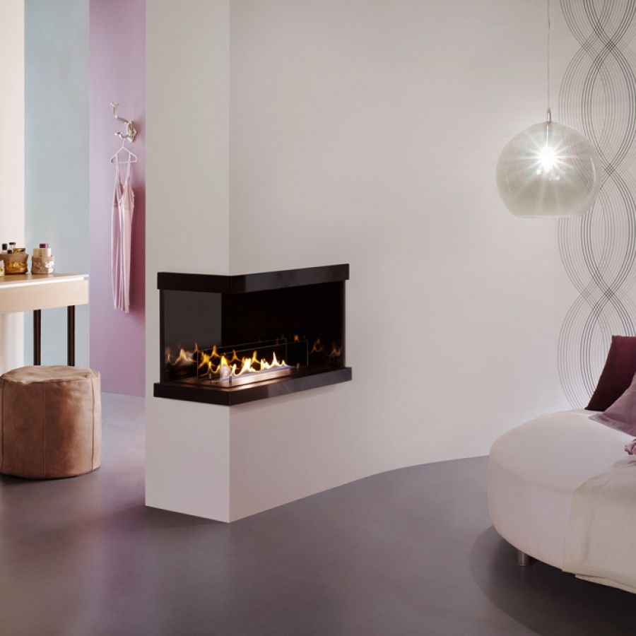 Quadra 2L Iest un joli insert au bioéthanol d'angle, qui peut être installé dans des cheminées en briques et des murs en parpaings ou en placoplâtre. Elle permet une visualisation des flammes de deux côtés et crée une luminosité chaleureuse dans la pièce