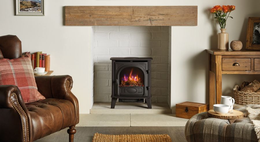 Les poêles électriques Stockton sont dotés de la technologie VeriFlame™ de Gazco grâce à laquelle il est possible de choisir entre deux réglages de chaleur, trois niveaux d’intensité lumineuse des flammes ainsi que l’option supplémentaire d’un effet flammes bleues sur haut réglage. Le radiateur est quant à lui discrètement dissimulé sous le poêle et peut être contrôlé par télécommande.