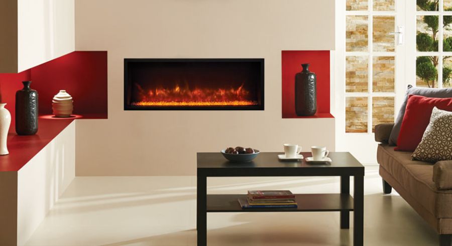 Le Radiance Edge, sans contours et à effet de “trou dans le mur”, constitue un sublime point focal avec ses lignes épurées et ses flammes dansantes bleues ou ambrées. La télécommande qui l’accompagne permet de moduler l’intensité lumineuse des flammes et de choisir entre deux niveaux de chaleur afin de créer l’atmosphère idéale.