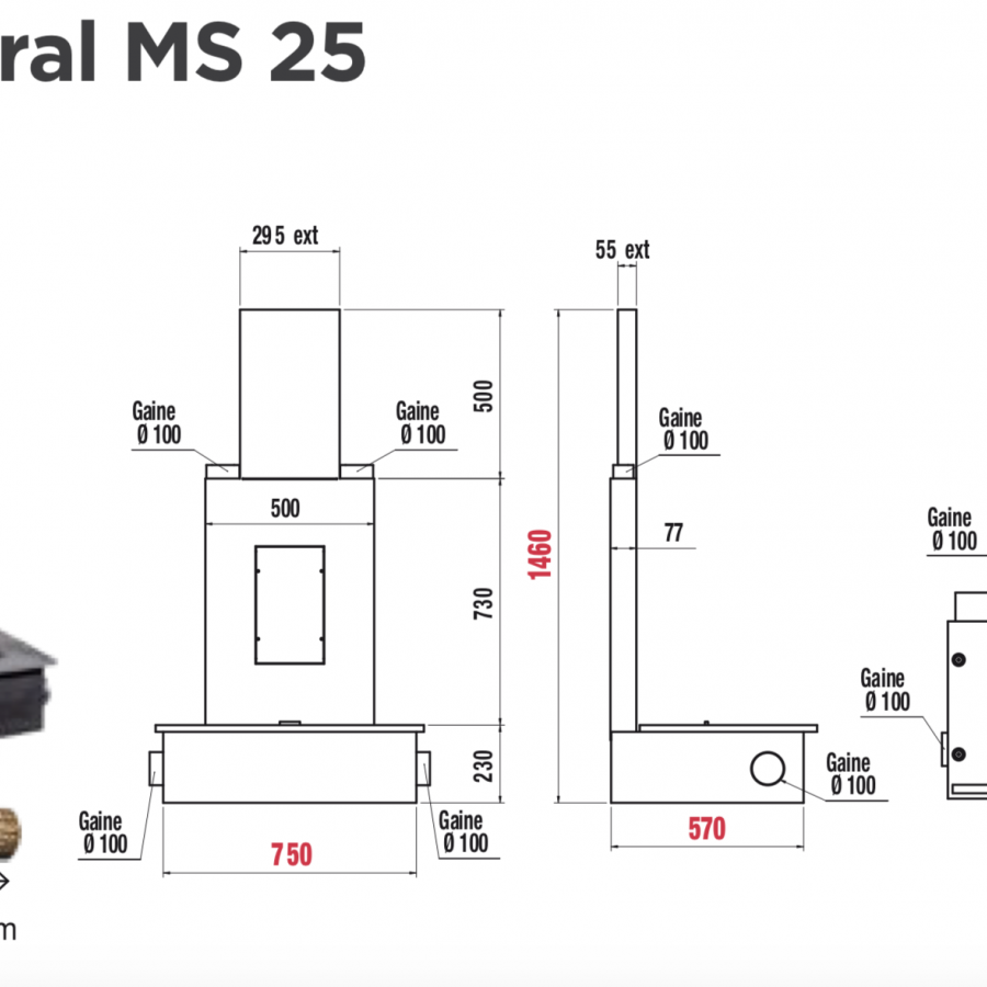 Bloc foyer avec récupérateur arrière. Pour bûches coupées à 50 cm.